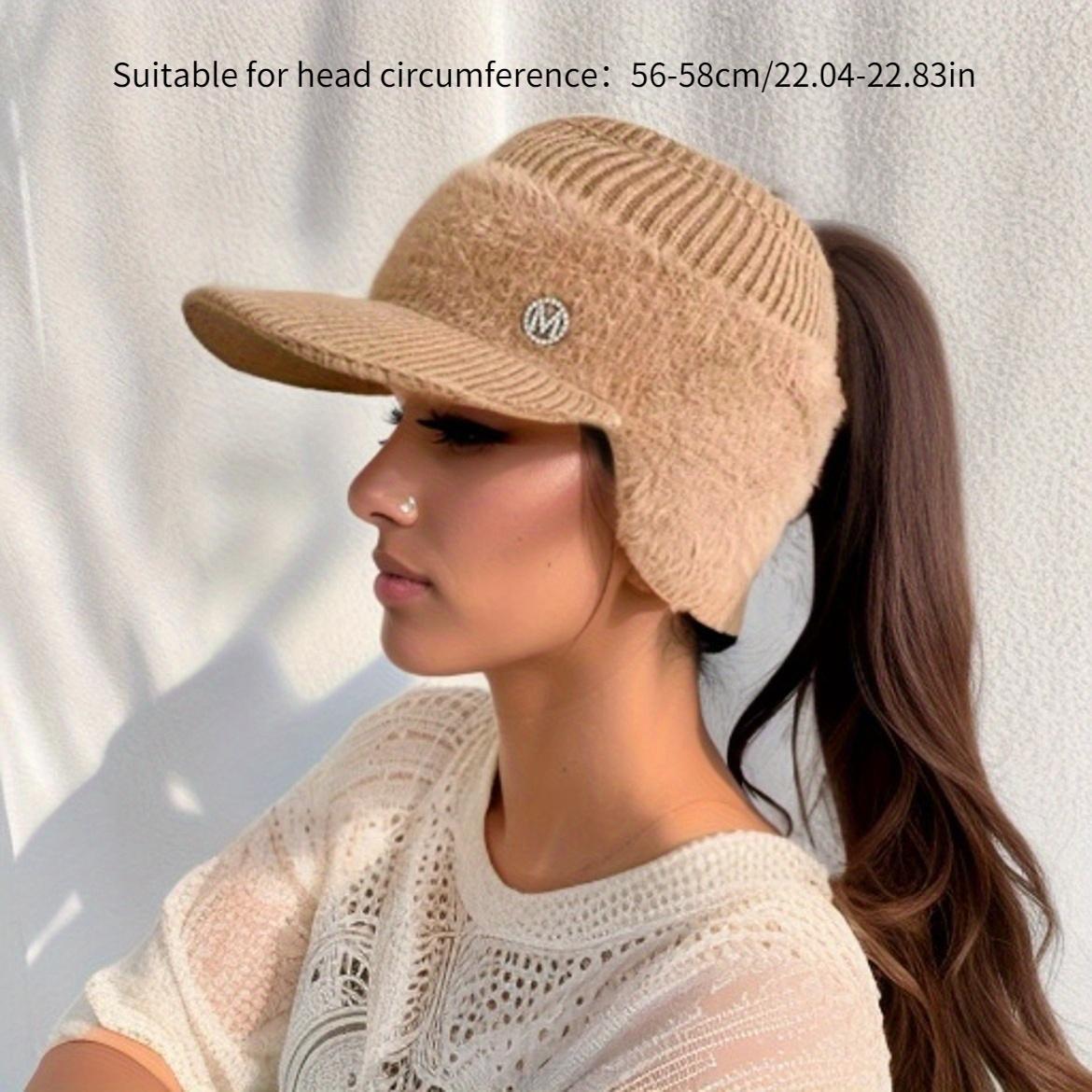 Женская шапка с декором в виде буквы «М», утолщенная трикотажная шапка, зимняя защитная шапка с пустым верхом и козырьком, ветрозащитная модная теплая велосипедная шапка хаки