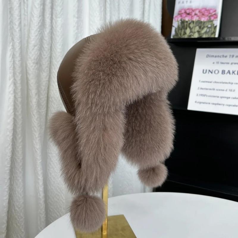 Женская шапка-ушанка из лисьего меха, защищающая уши, модная, роскошная шапка-бомбер из натурального лисьего меха, зимняя уличная шапка из мягкой овчины для девочек 53cm-60cm