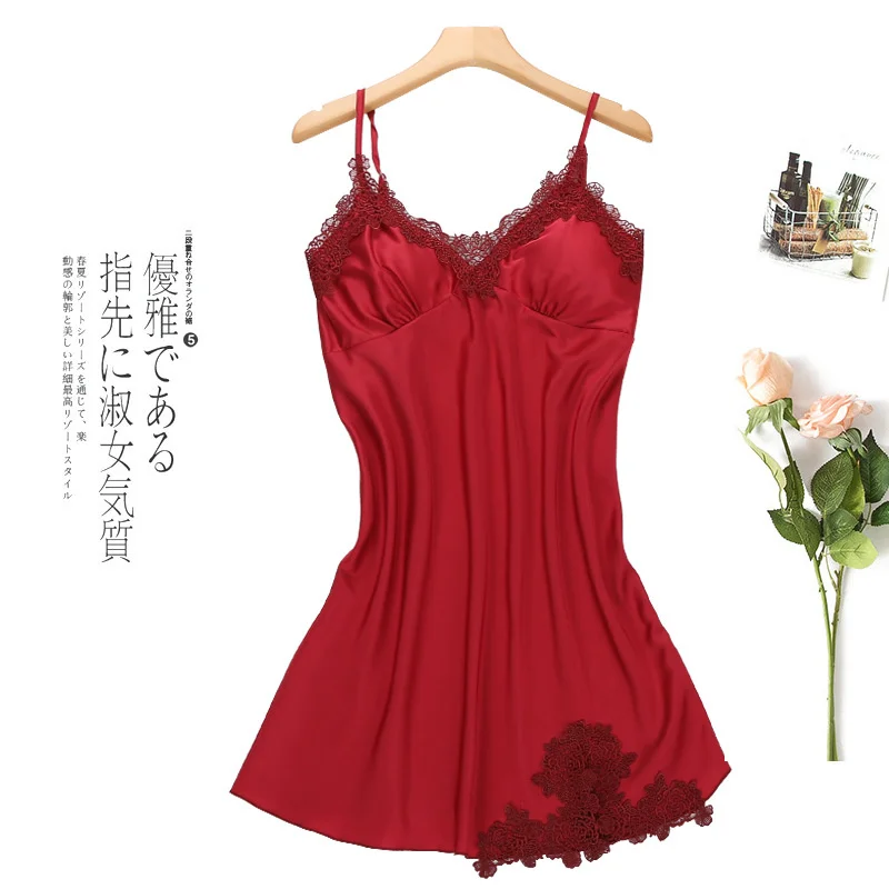 Женская шелковая пижама, новая летняя Ночная рубашка на бретелях с V-образным вырезом, сексуальная короткая юбка, тонкая Домашняя одежда с б...