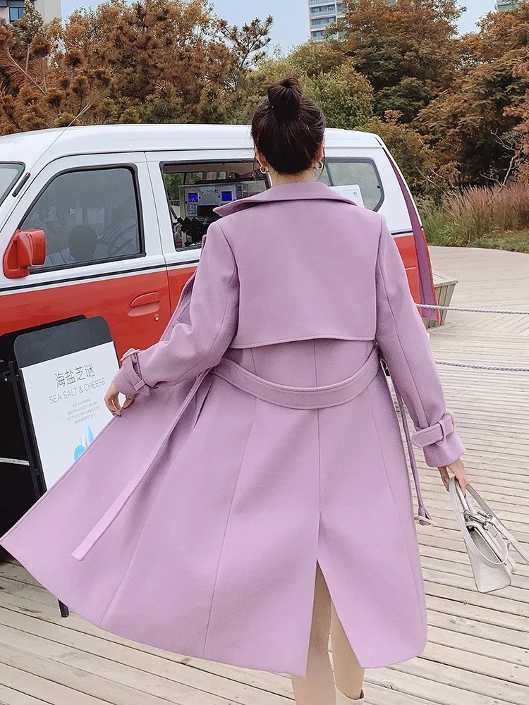 Женская шерстяная ветровка с поясом, фиолетовая или черная элегантная приталенная Повседневная Длинная куртка в стиле ретро, Осень-зима 2022