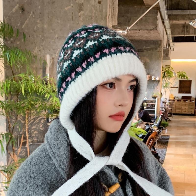 Женская шерстяная ретро-шапка с контрастным узором «Фэр-Айл», пуловер премиум-класса, зимняя теплая шапка из вязаной шерсти с защитой ушей