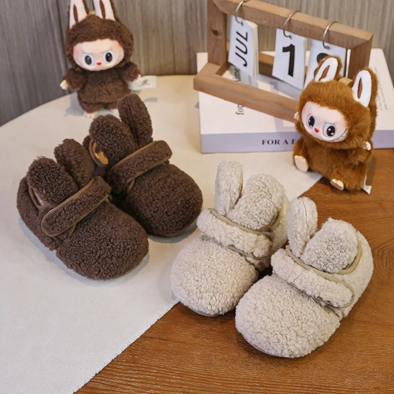 Женская шерстяная хлопковая обувь, новинка зимы 2021, плюшевая теплая обувь с низким берцем и кроличьими ушками на мягкой подошве для детей