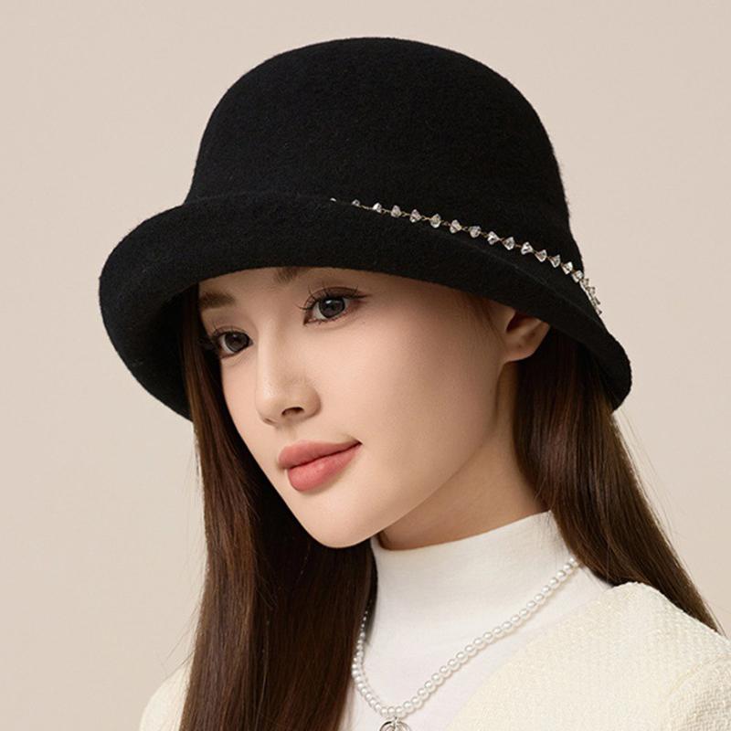 Женская шерстяная шляпа со стразами по краю фетровая шляпа британская шляпа-тазик чёрный