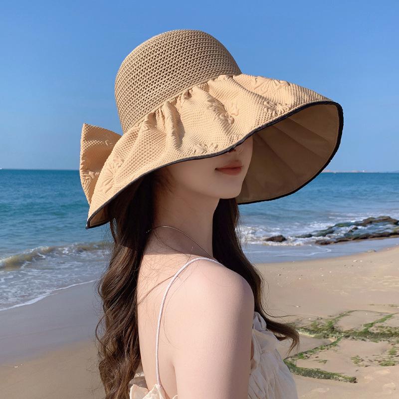 Женская элегантная вязаная шляпа от солнца с бантом, дышащие летние рыбацкие шляпы, уличный солнцезащитный козырек и солнцезащитный крем, модная панама весна/лето one size
