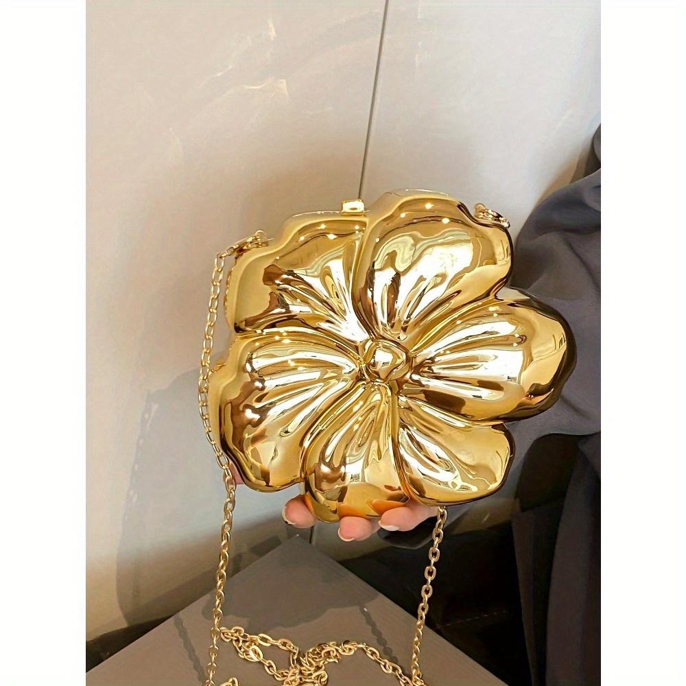Женская элегантная мини-сумка кроссбоди в виде цепочки в форме цветка, металлическая сумка на плечо для тематической вечеринки в стиле Y2K, модные сумки необычной формы, универсальная маленькая Gold золотой