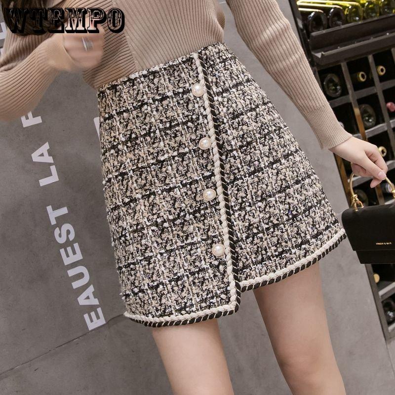 Женская элегантная твидовая юбка неправильной формы до середины тела, темпераментная клетчатая юбка трапециевидной формы с высокой талией, антилегкая маленькая короткая юбка с ароматным ветром L абрикосовый