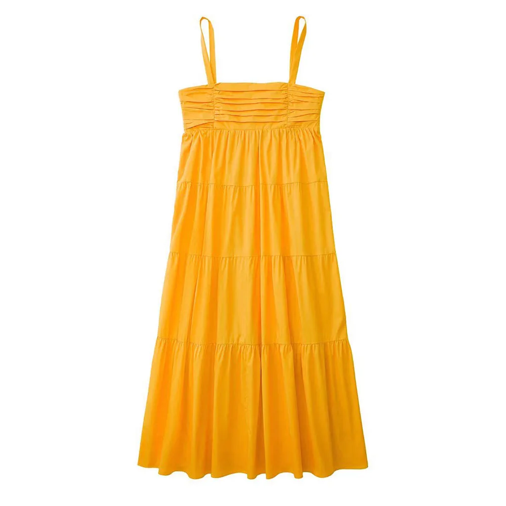 Женская юбка, Новинка лета 2022, модное повседневное многослойное платье из поплина, шикарная юбка миди с прямым воротником на подтяжках для ж...