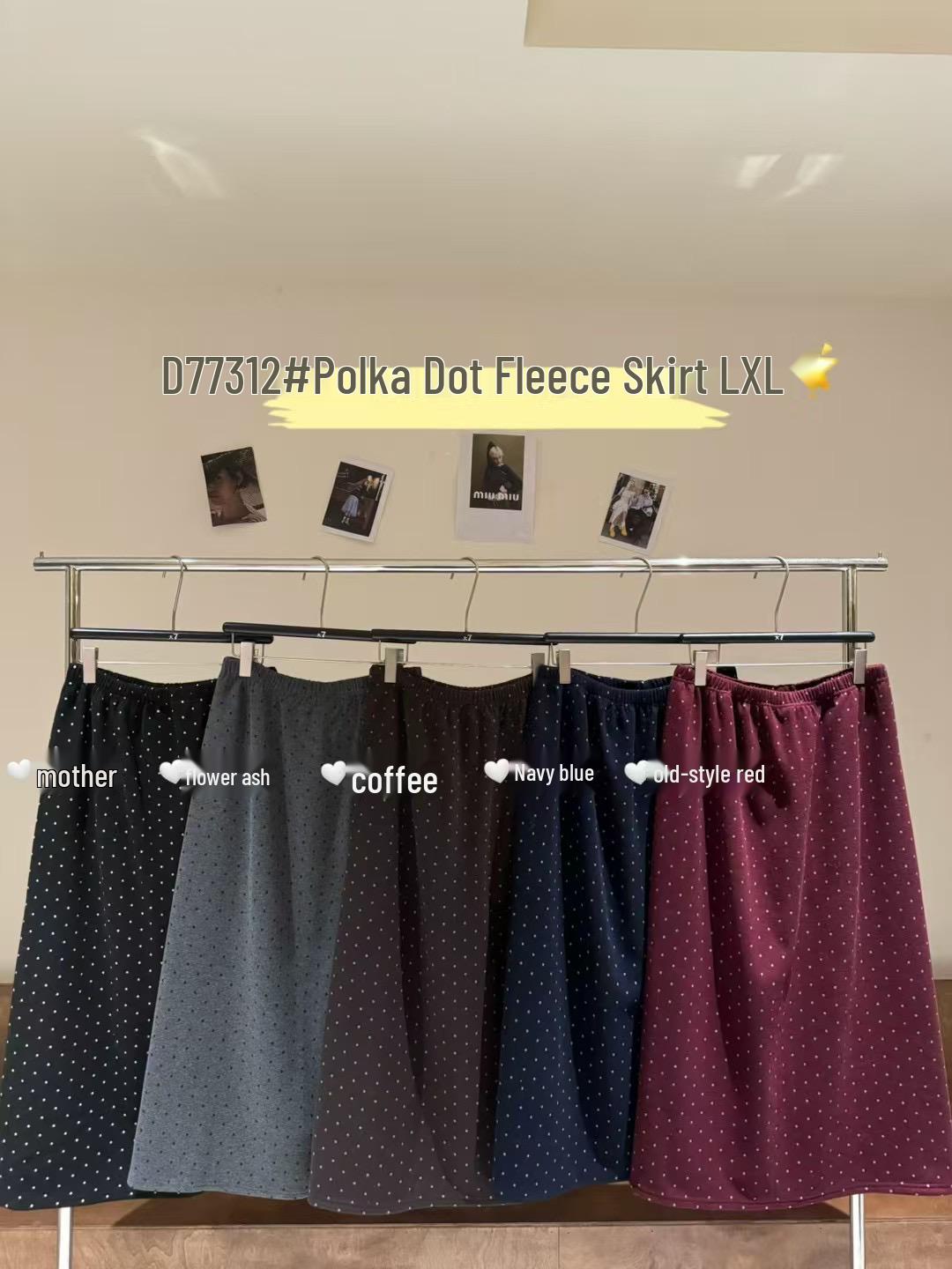 Женская юбка большого размера в корейском стиле в горошек на флисовой подкладке с высокой талией, зимняя, стройнящая и повседневная. L