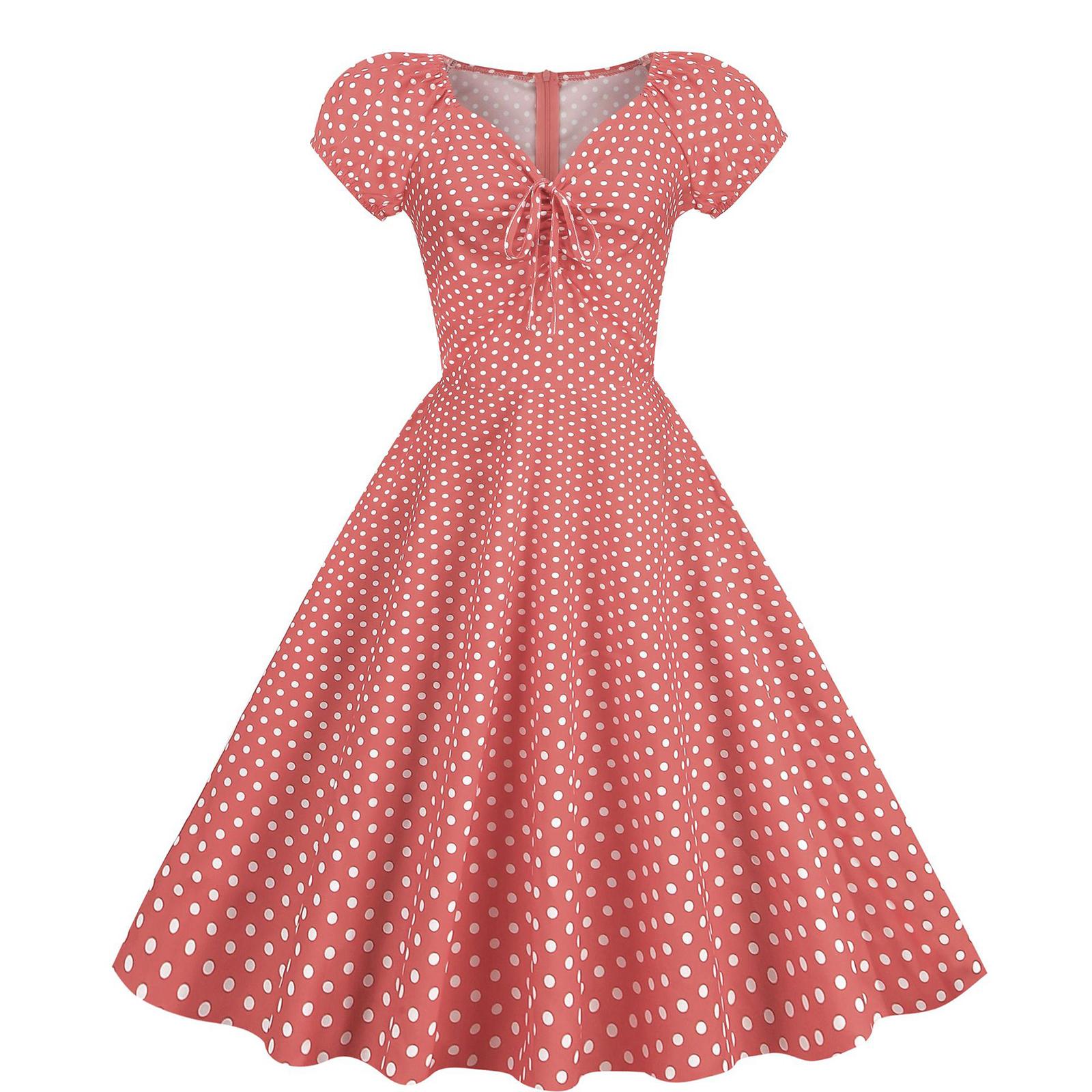 Женская юбка в стиле ретро в стиле Хепберн с рукавами-пузырями, принтом в горошек и широким подолом S
