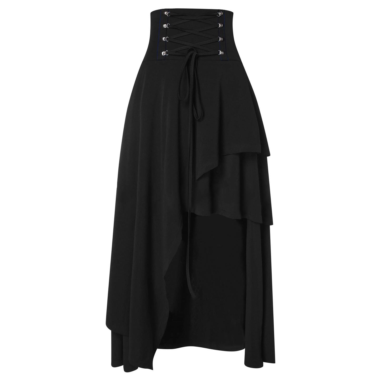 Женская юбка в стиле ретро с оборками на талии, женская юбка в стиле ретро, свободная юбка XL чёрный