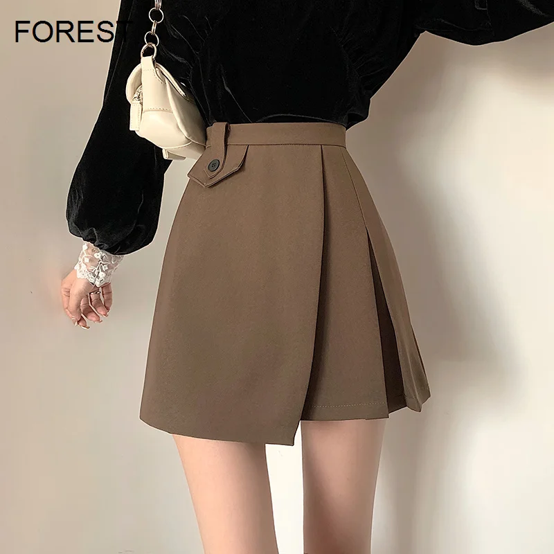 Женская юбка до середины икры, Весенняя Корейская Шикарная новая нестандартная тонкая юбка со складками и высокой талией, уличная юбка А-си...