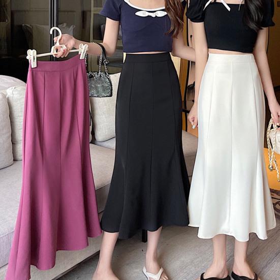 Женская юбка-русалка с высокой талией, винтажная офисная юбка-карандаш для леди, однотонная юбка-молния на весну и лето средней длины M фиолетовый