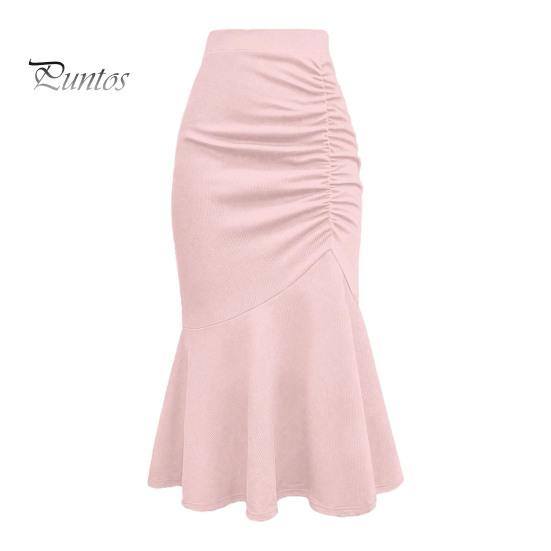 Женская юбка-рыбий хвост, высокая талия, облегающая юбка миди с запахом на бедрах, с широким подолом, однотонная офисная женская юбка 2XL розовый