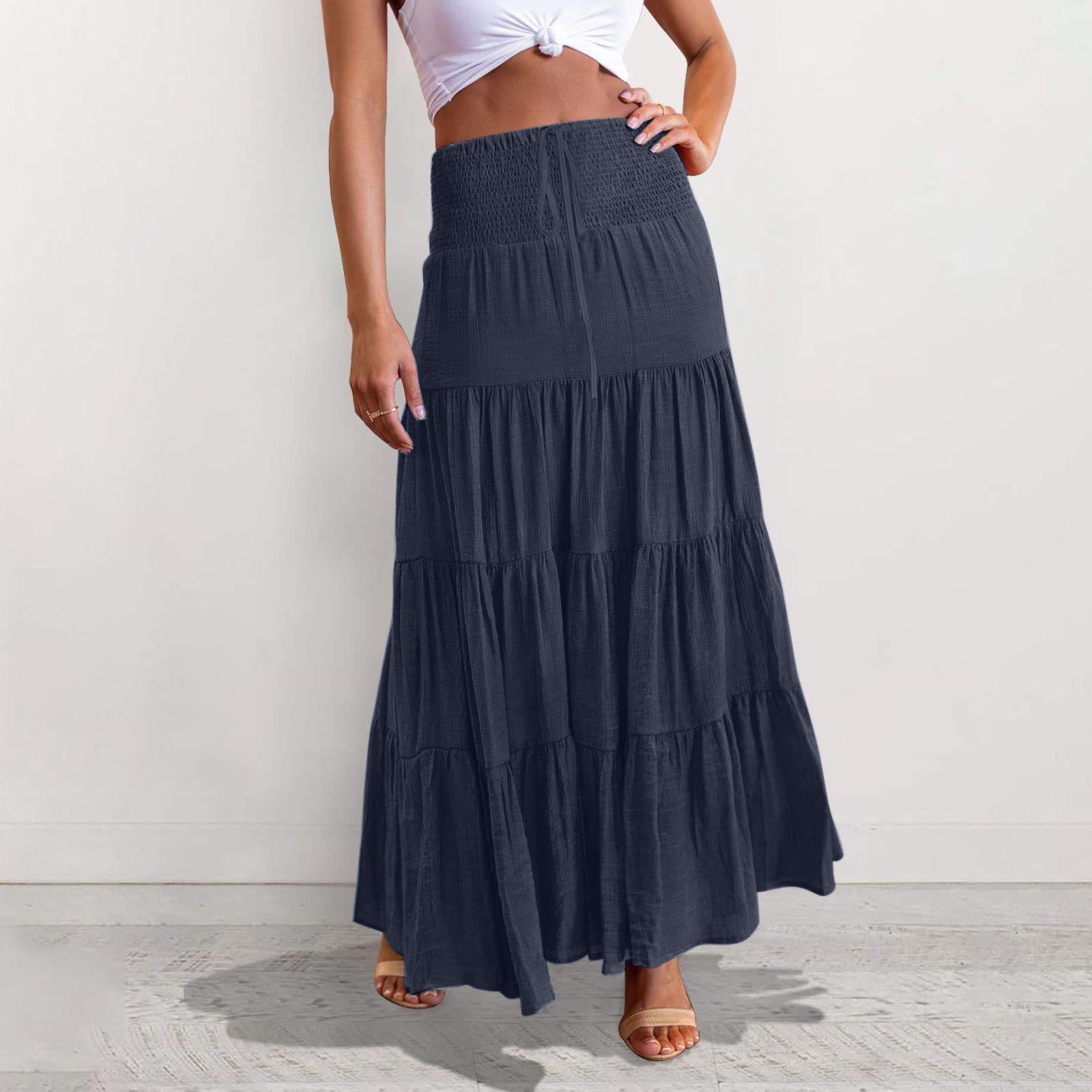Женская юбка средней длины с высокой талией, богемная плиссированная элегантная длинная юбка трапециевидной формы M тёмно-синий