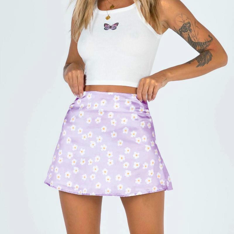 Женская юбка с принтом, атласная атласная юбка с высокой талией, маленькая сломанная цветочная юбка XL фиолетовый