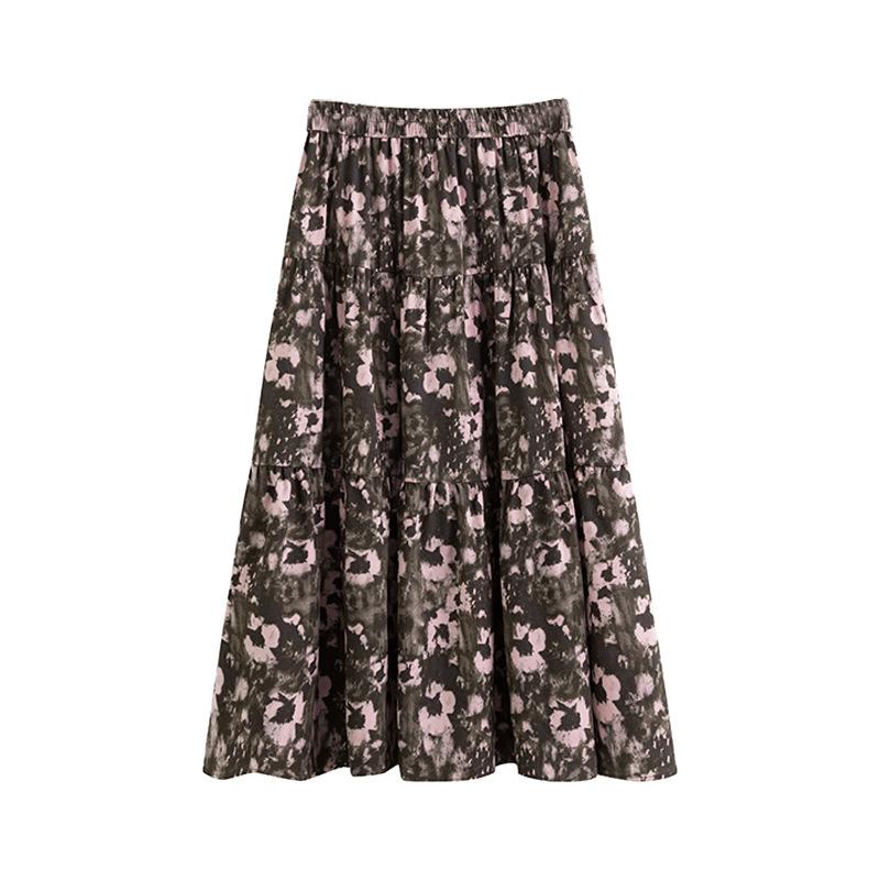 Женская юбка с французским цветочным принтом длиной до колена, летняя плиссированная юбка средней длины, утягивающая юбка-зонтик 4XL розовый/кофейный