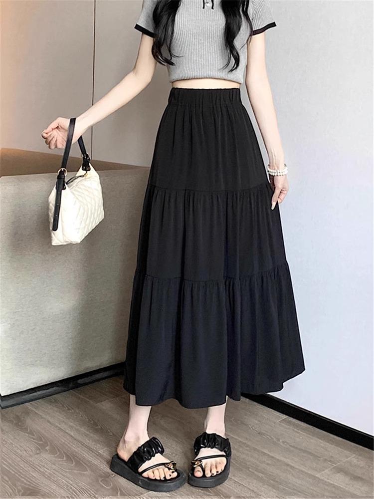 Женская юбка-трапеция в стиле «американский ретро» с высокой талией и складками — белая, летняя, прикрывающая бедра, облегающая, удлиненная XS чёрный