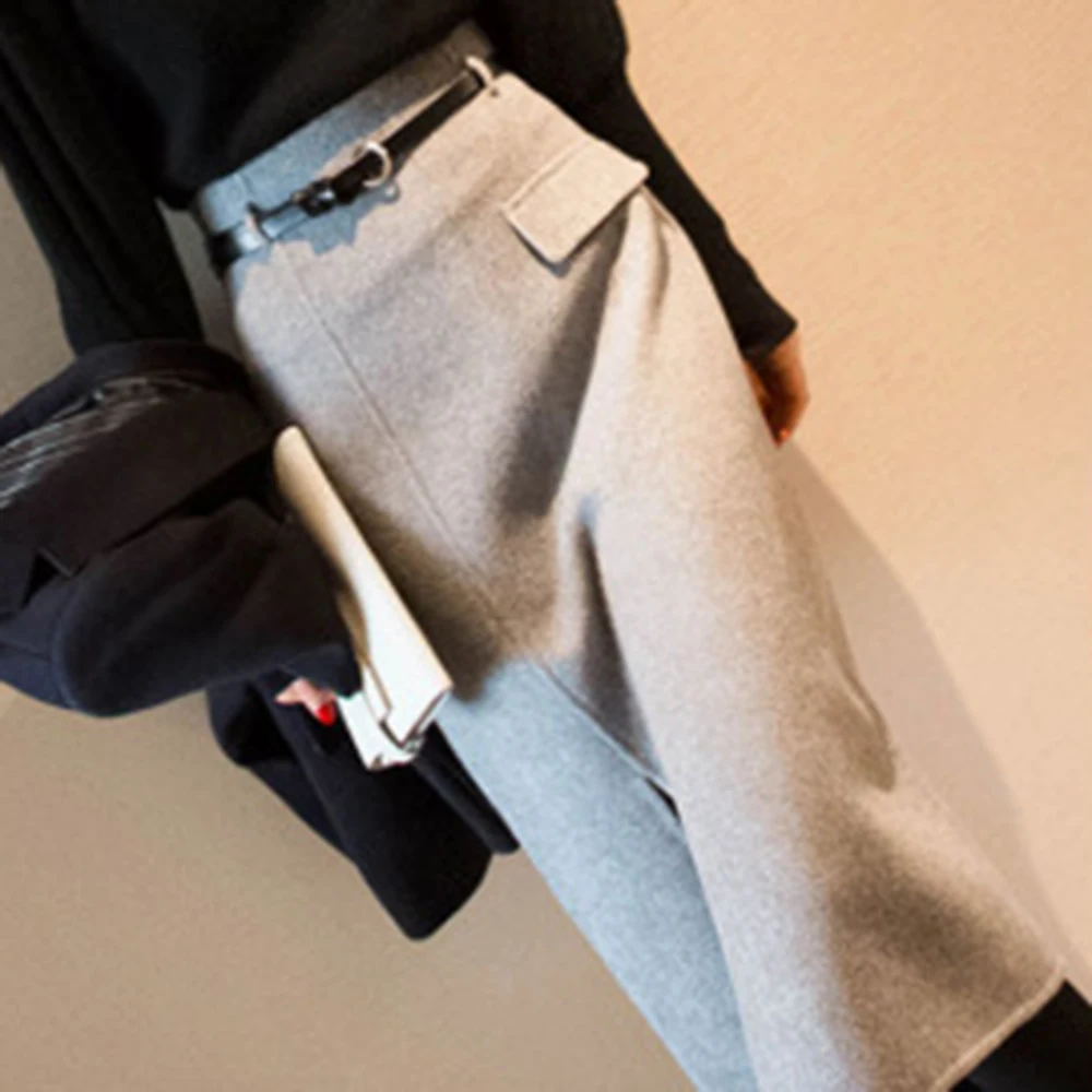 Женская юбка Wooled, облегающая шерстяная, зимняя, осенняя, толстая, теплая, выше колена, с поясом, однотонная, однотонная, серый, черный, большие...