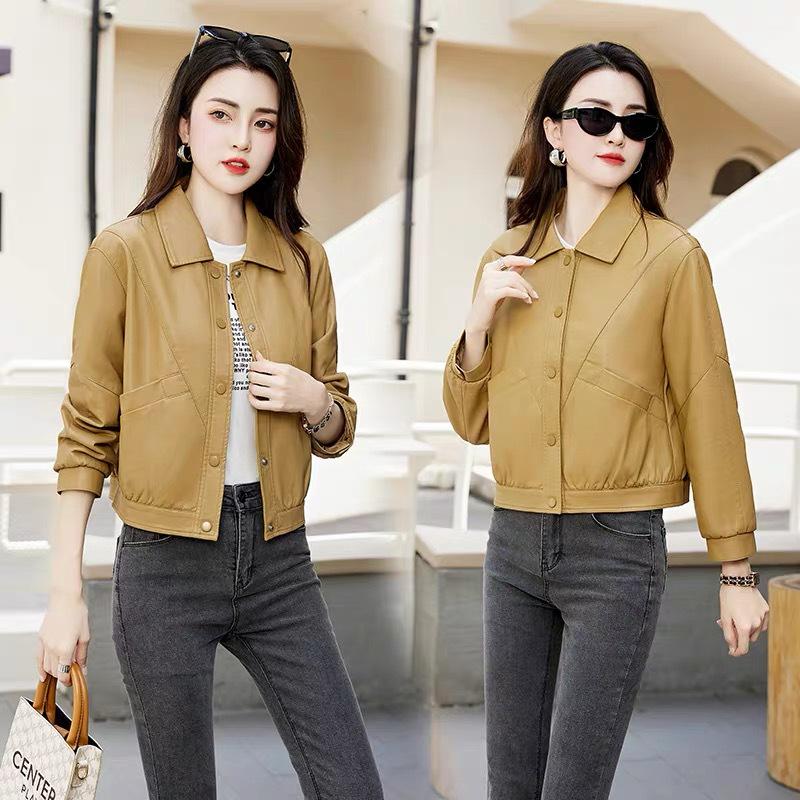 Женская 2024 Весенняя Модная Кожаная Куртка Высокого Класса - Короткая, Универсальная, Простой Стиль XL (110-125 lbs) хаки