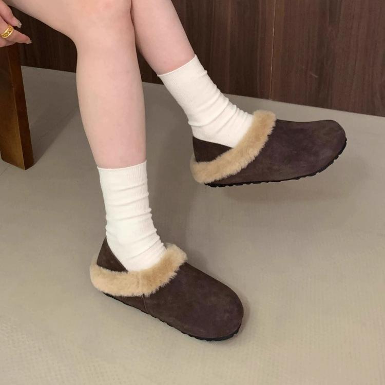 Женская 2024 новая осенне-зимняя бархатная ретро-пушистая полуоблегающая женская уродливая милая ленивая персона, носящая хлопковые туфли дважды на одной ноге 40