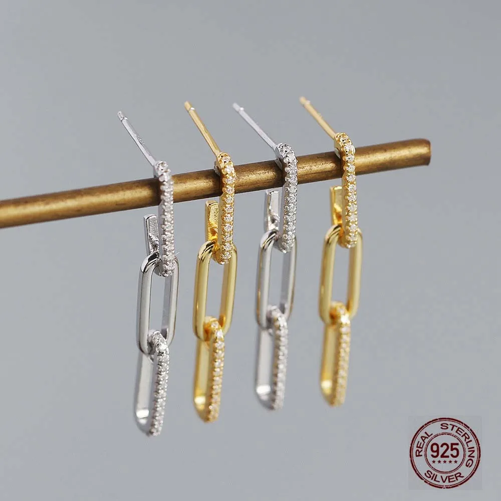 Женские Висячие серьги Стразы с цепочкой из стерлингового серебра 925 пробы, гипоаллергенные стильные висячие серьги в стиле панк, длинные м...