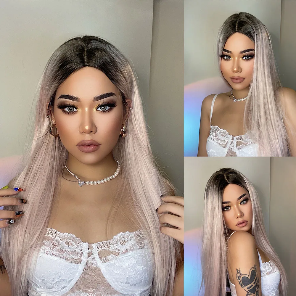 Женские Длинные прямые синтетические парики henmargu, парики с эффектом омбре, серая, светлая, черная, парик для косплея, парик для естественной ...