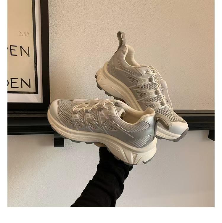 Женские альпинистские туфли на платформе, кроссовки dad, весенне-летняя сетчатая дышащая модель, 2025 новый модный цветной блок, женская спортивная обувь для активного отдыха 40 серебряный