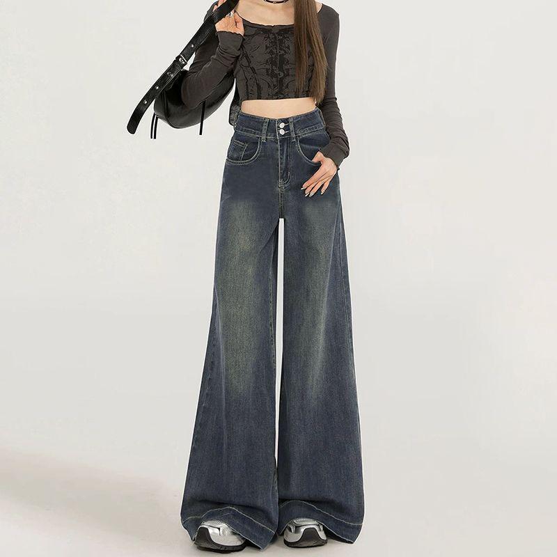 Женские американские ретро синие эластичные джинсы широкие от бедра - Высокие, Свободные, Длина в пол, Стиль Осень/Весна Small