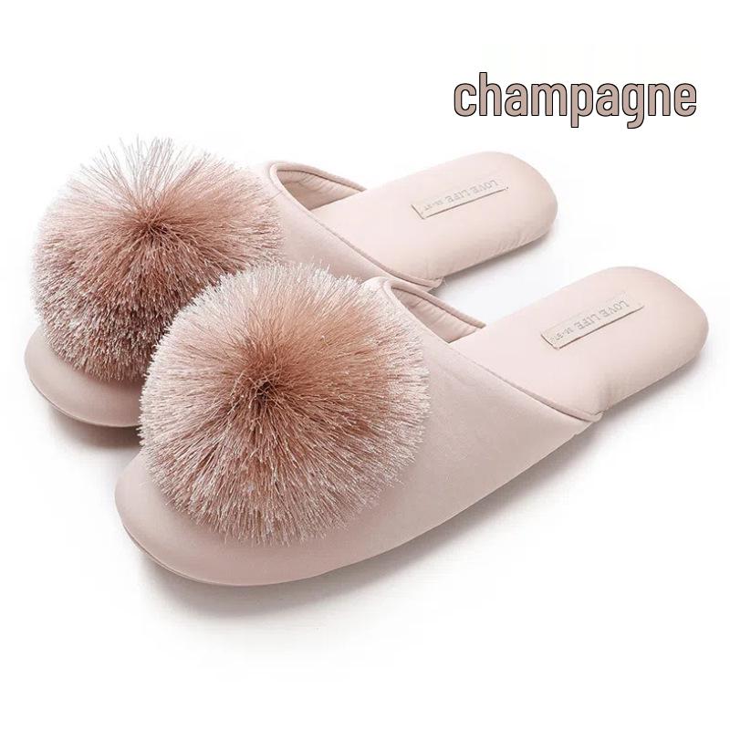 Женские атласные тапочки с кисточками: Шелковистый, Нескользящий, Дышащий, Бесшумный Комфорт для Весны и Осени. 38/39 шампанского