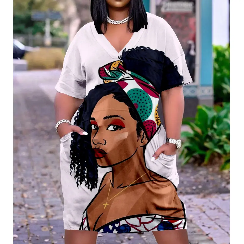 Женские африканские винтажные платья с карманами, новое летнее черное платье с 3D принтом, женское элегантное платье-миди из меланина с V-обр...