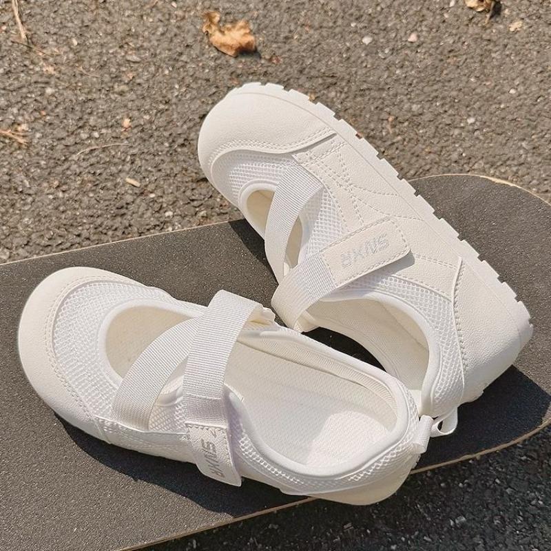 Женские белые туфли на липучке с мелким вырезом, новая летняя дышащая сетка, универсальная мягкая подошва, повседневная обувь 40 белый