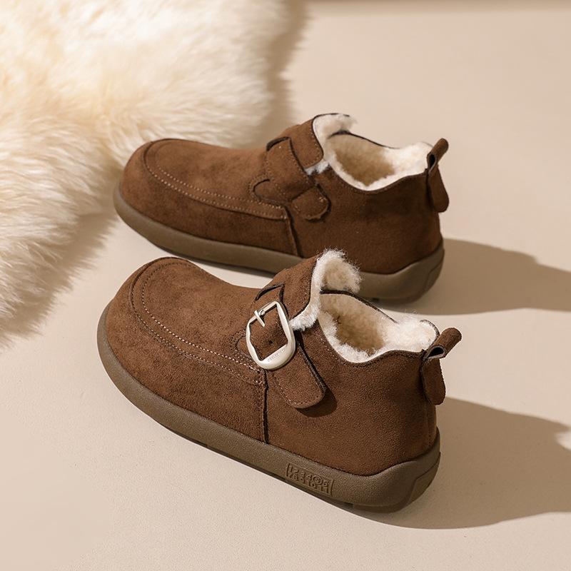 Женские большие размеры мягкая подошва увеличивающая рост зимние теплые с одним стременем из меха одна противоскользящая сноубутсы плюшевая подкладка ботильоны уличные спортивные хлопковые ботинки 40 коричневый