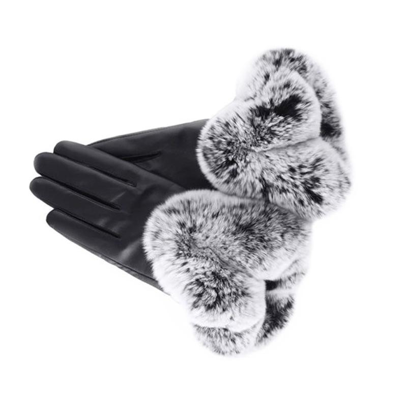 Женские большие V-образные теплые кожаные перчатки с сенсорным экраном, зимние модные черные перчатки из искусственной кожи для езды на велосипеде