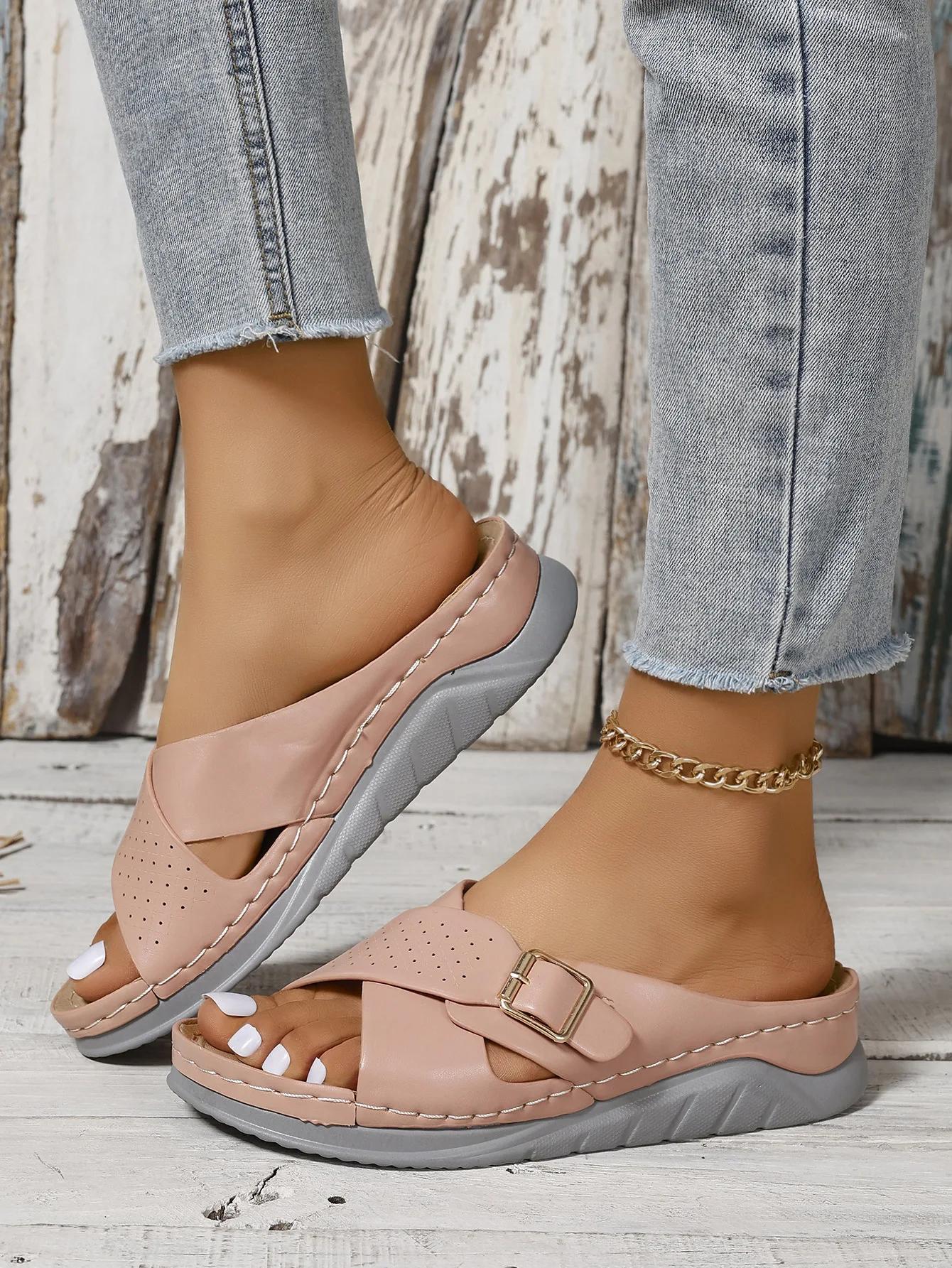 Женские босоножки на танкетке с платформой, новые тапочки на толстой подошве, женские пляжные сандалии с перекрестными ремешками, удобные мягкие нескользящие шлепанцы 41 розовый