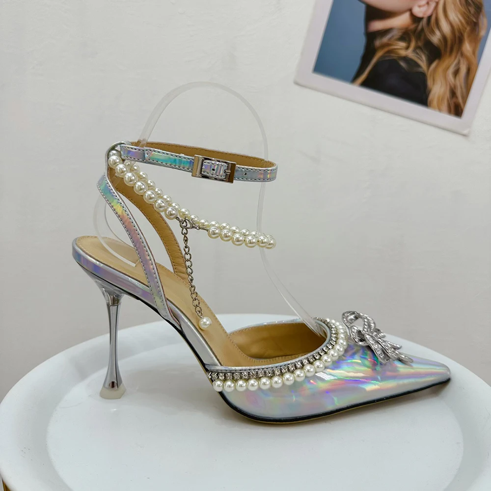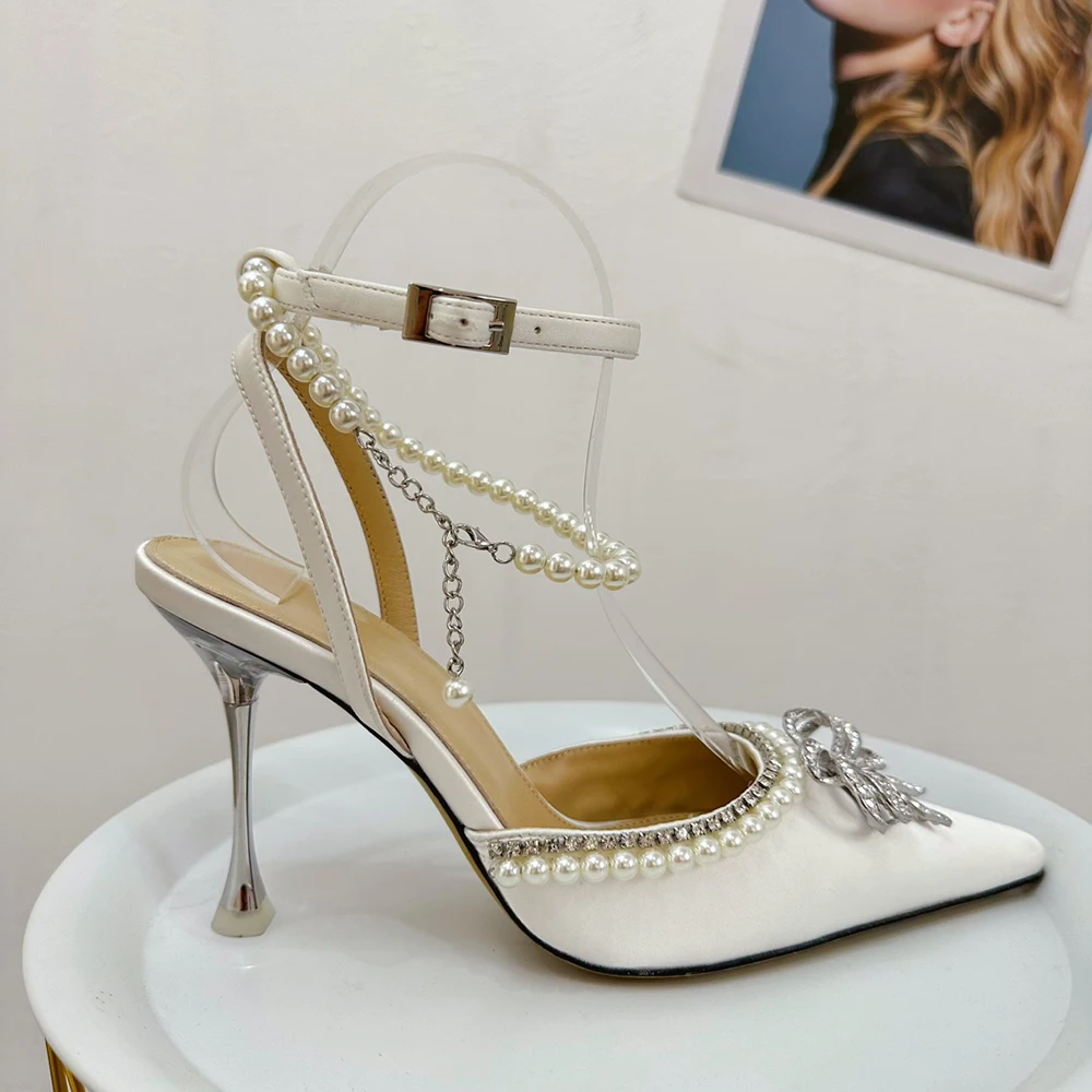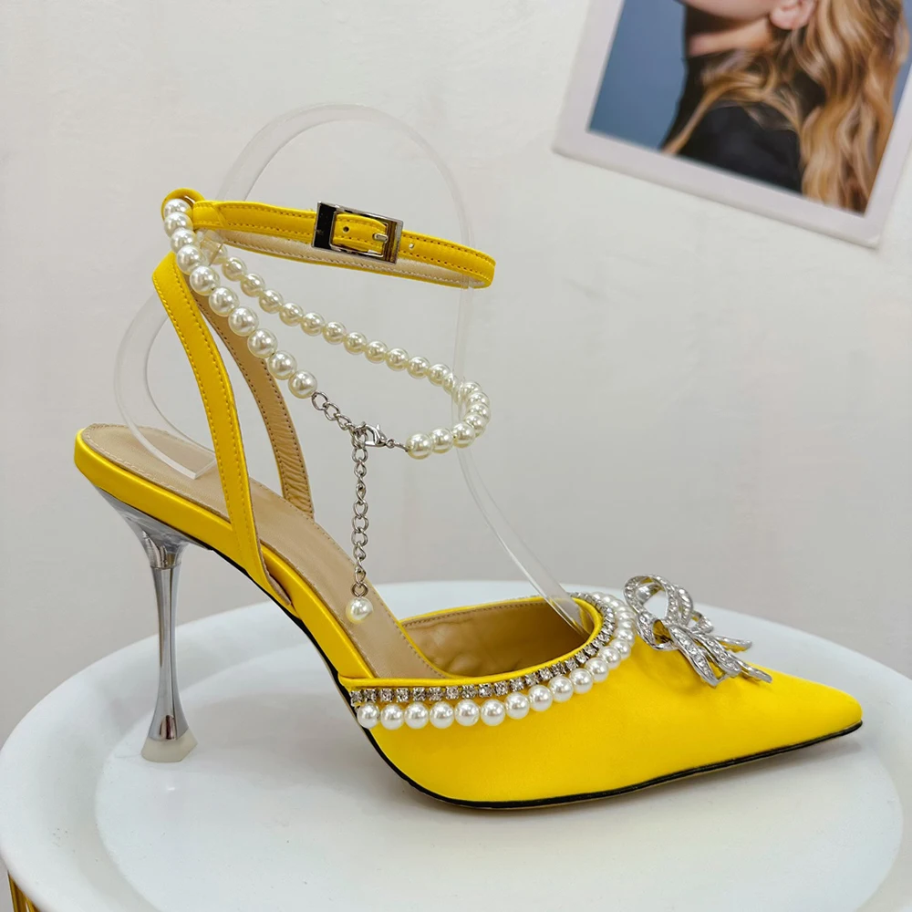 Женские босоножки с острым носком, туфли на шпильке, Высококачественная шелковая обувь с жемчугом, подарок на день рождения, Новая летняя обувь