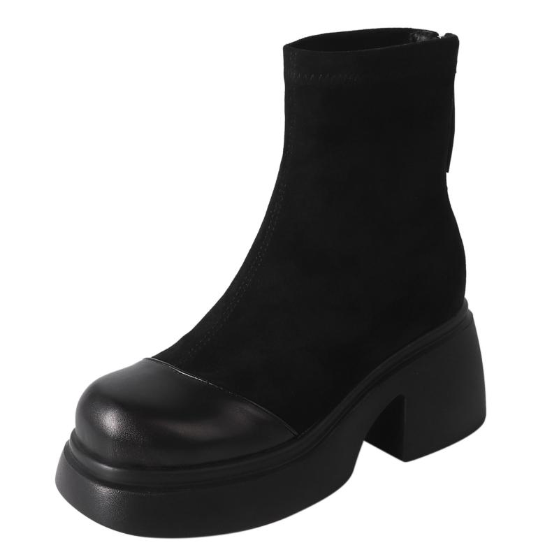 Женские ботильоны на платформе Новинка 2024 Толстая подошва Блочный каблук Короткие ботинки для женщин Модные замшевые черные Осенне-зимние туфли Женские 38 чёрный