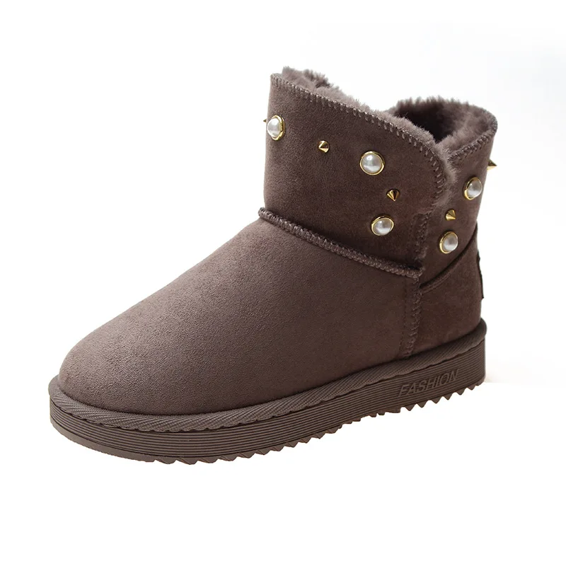 Женские ботильоны на плоской подошве, зимние меховые сапоги, теплая зимняя обувь, женская обувь с круглым носком, женская кожаная обувь из ф...