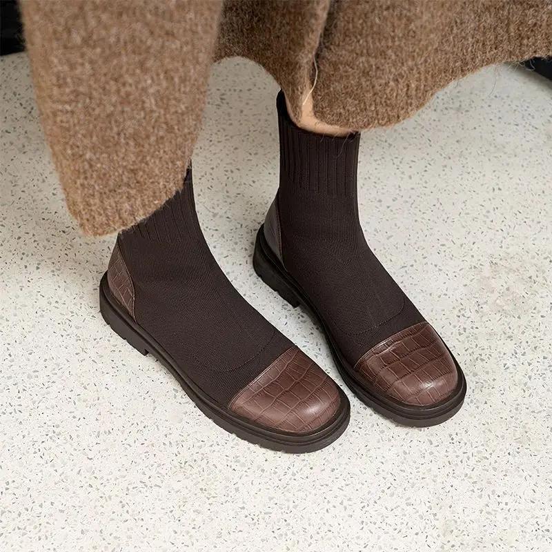 Женские ботильоны на плоской подошве осенние эластичные по акции новинка женская короткая обувь мода 2025 тренд Y2k большой размер теплые пу ботильоны 40
