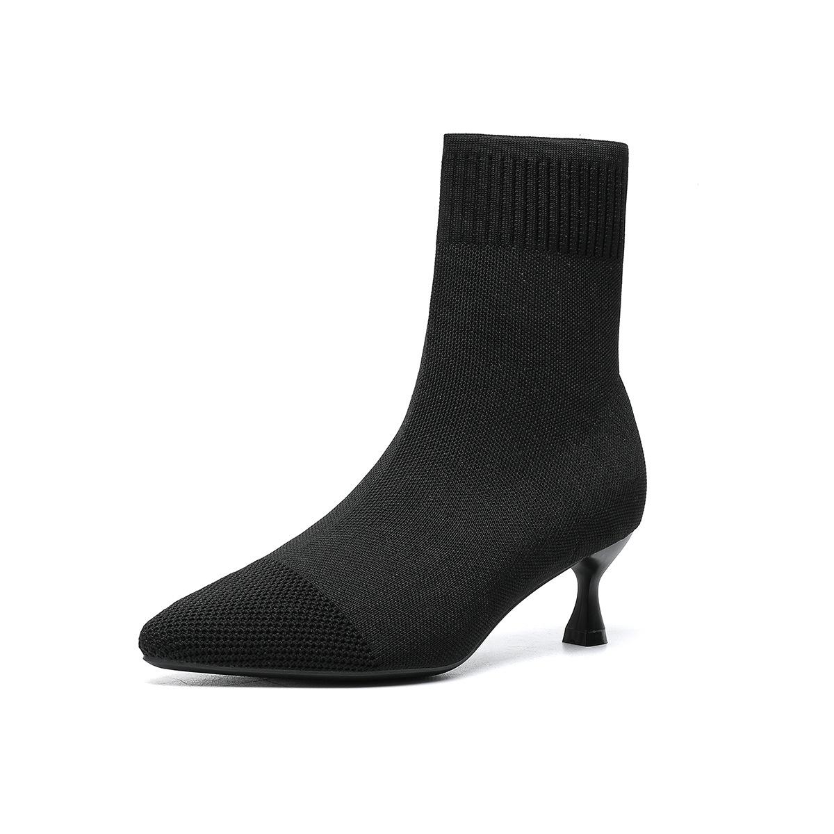 Женские ботильоны с острым носком и носком на низком каблуке, дышащие, эластичные, женские, удобные, на каблуке-рюмочке, вязаные, нарядные, рабочие ботинки 43 чёрный