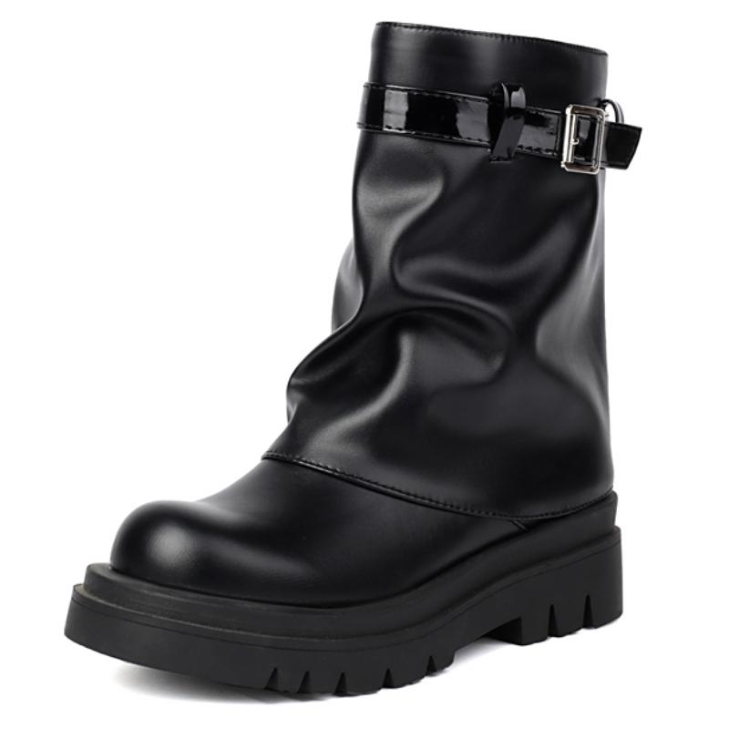 Женские ботильоны с отворотом, зимняя обувь, черные, белые, короткие ботинки, панк, низкий каблук, мотоциклетные ботинки, женские, большой размер 45 39 чёрный