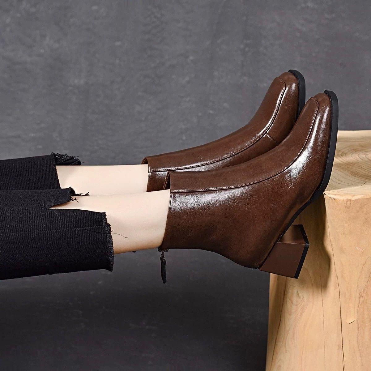 Женские ботильоны челси в западном стиле - Осень/Зима 2025 Французский ретро средний каблук Теплые хлопковые ботинки Default item
