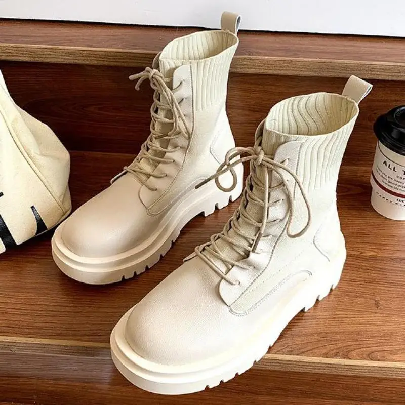 Женские ботильоны 2021, модная мотоциклетная обувь с круглым носком, обувь на толстом каблуке и платформе, женская обувь Ytmtloy с перекрестной ш...