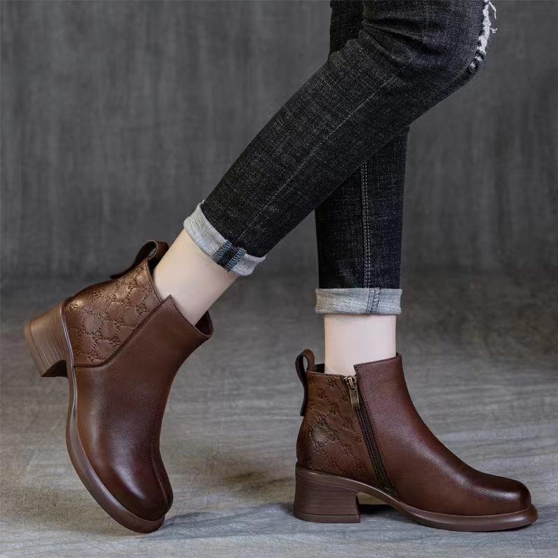 Женские ботинки челси с круглым носком в стиле ретро, осенние и зимние туфли на высоком каблуке на массивном каблуке, ботильоны из натуральной кожи