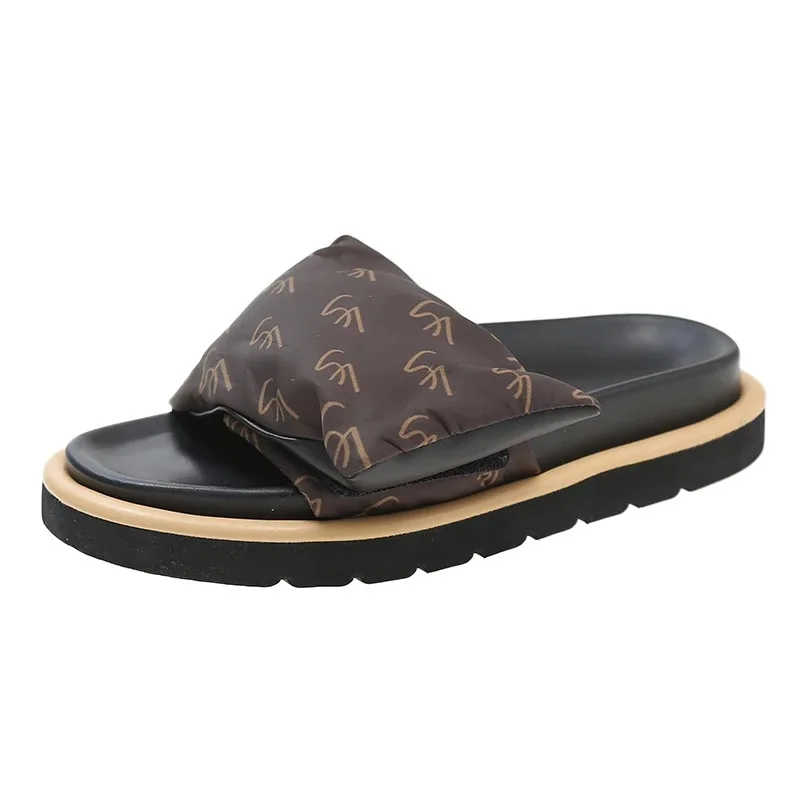 Женские брендовые дизайнерские домашние тапочки, Нескользящие шлепанцы на плоской подошве, с ремешком для одно слово, повседневные пляжные...