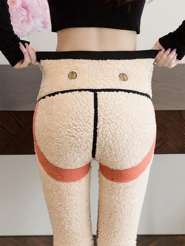 Женские брюки Теплая зима Толстые бархатные леггинсы Черный Корейская мода Высокая талия Фиолетовые облака Ягненок Шерсть Брюки