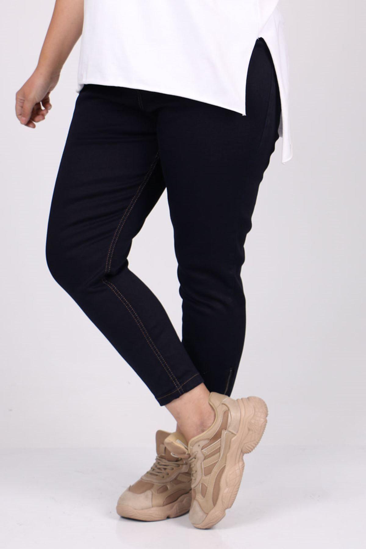 Женские брюки больших размеров, узкие джинсы большого размера с эластичной резинкой на талии - темно-синий-2