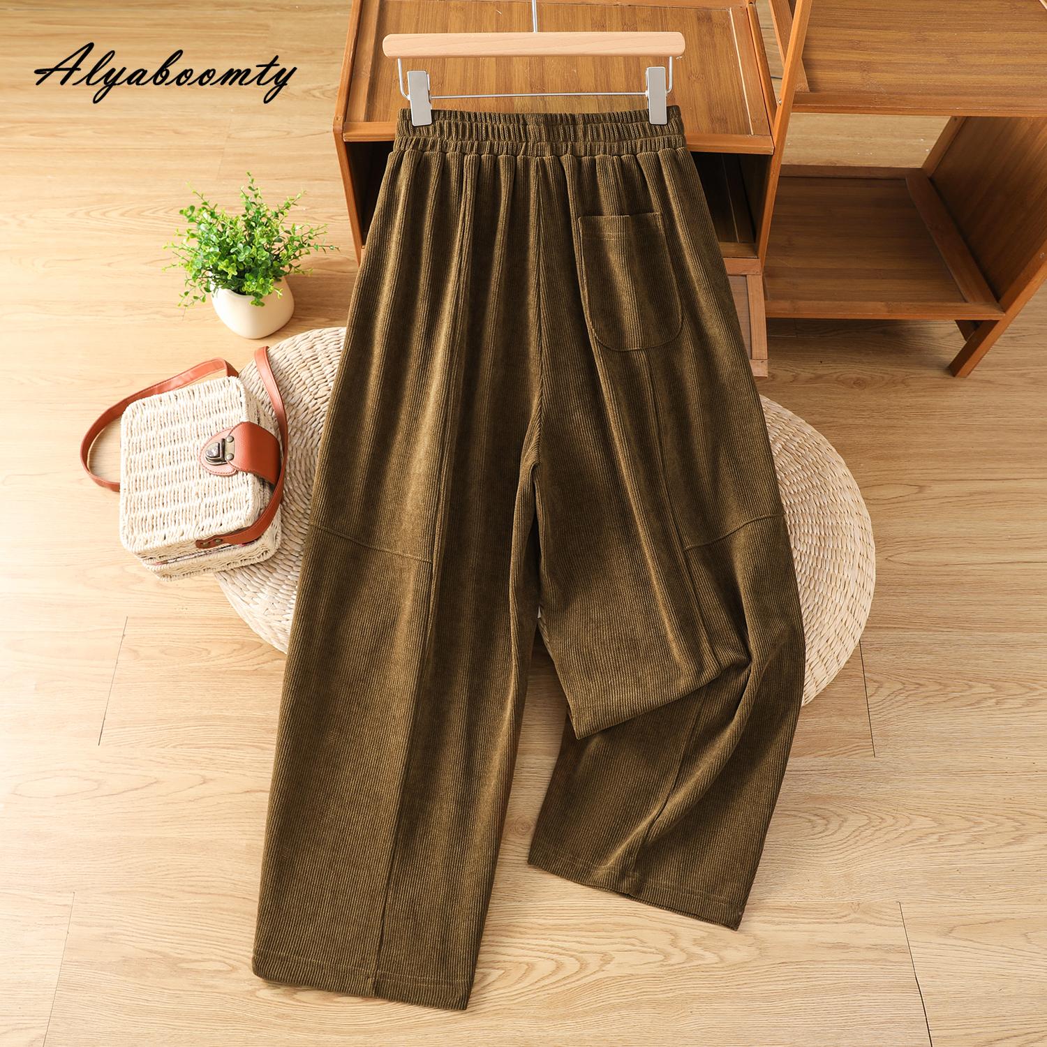Женские брюки гаремного типа в корейском стиле, весна-осень, эластичная талия, черные, коричневые, повседневные, свободные, вельветовые капри, винтажные мешковатые базовые женские брюки One Size коричневый