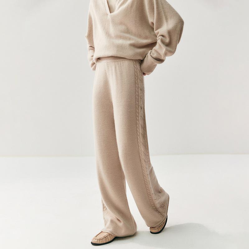Женские брюки из толстого кашемира - однотонные, облегающие бедра, длиной до пола, с боковым узором косы для осени и зимы. Medium