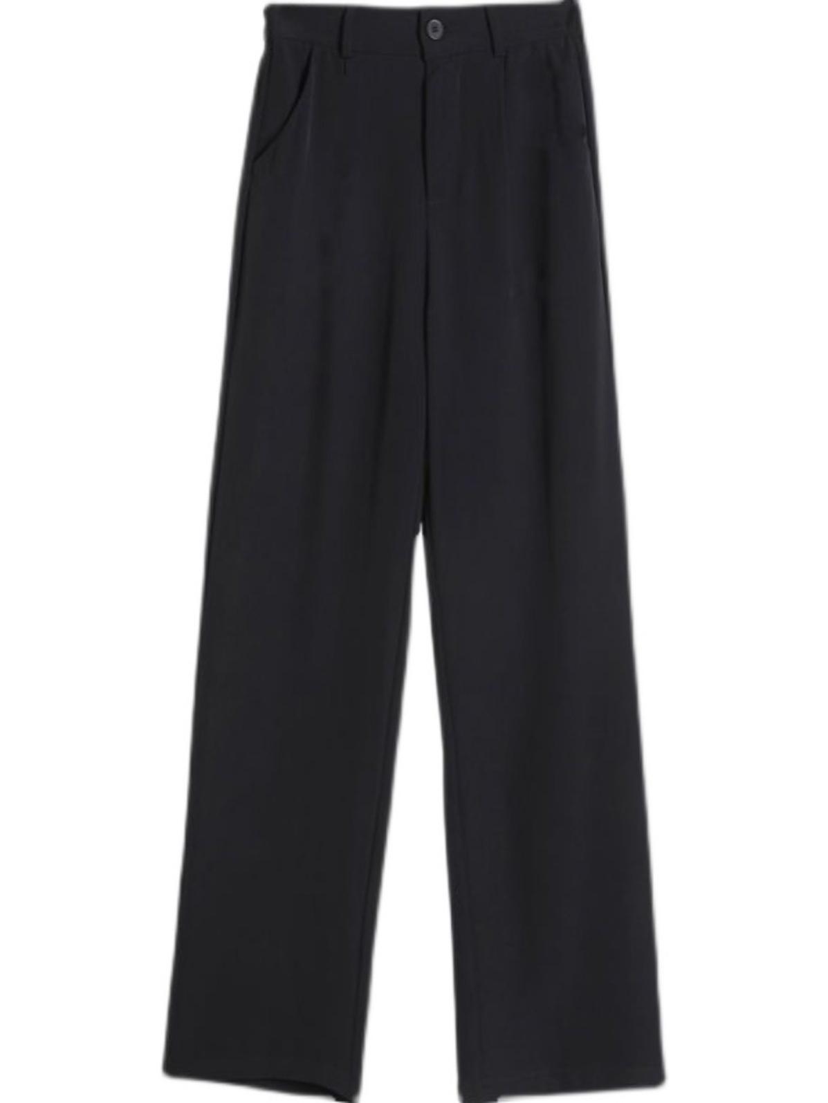 Женские брюки-костюмные с высокой талией, черные, широкие штанины - Прилегающие, прямые и драпирующиеся для весны/лета M чёрный