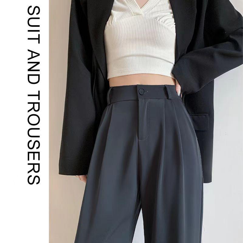 Женские брюки-костюм с высокой талией и широкими штанинами - Коллекция Осень 2023 L серый